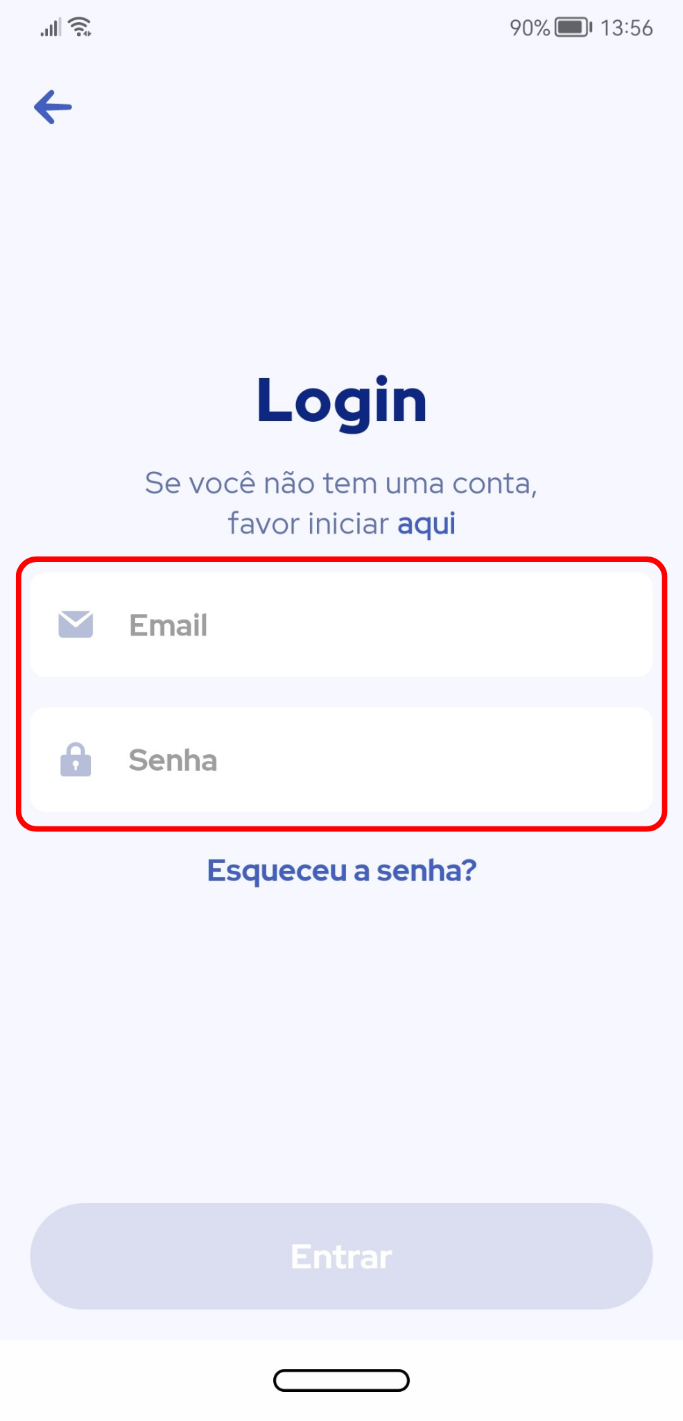 2. Abra o app e clique na opção 'Login' na tela inicial do app, conforme imagem abaixo: